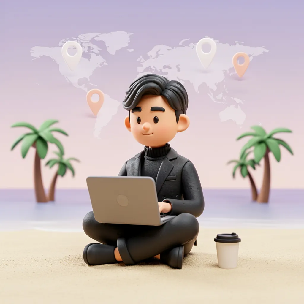 어디서든사무실에 묶여있지 않습니다. 발리, 도쿄, 유럽 어디서든 노트북 하나로 일합니다.